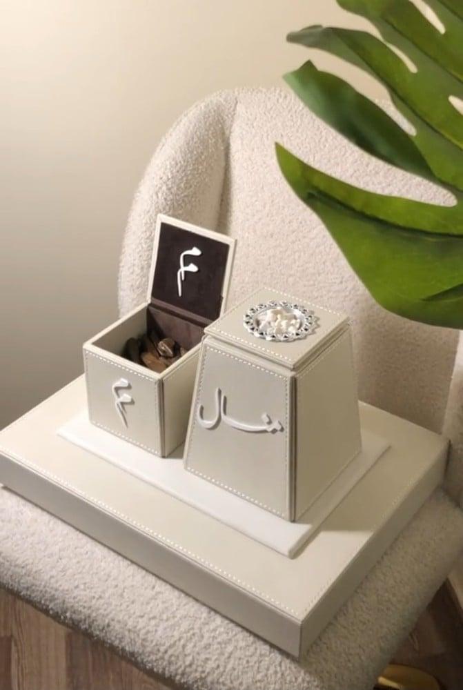 طقم مبخرة أنيقتفاصيل المنتج• طقم مبخره جلد بالاسم• يتكون من مبخره وعلبه العود وصينيه• الاسم حسب الطلبالشحن والتوصيل• خدمات شحن وتوصيل الى جميع مدن المملكه ...