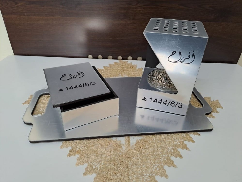 طقم مبخرة انيق مصمم بالاسم والتاريخ حسب الطلب